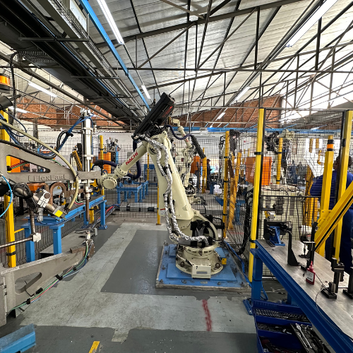 Automated spot welding ensures consistent, high-quality joints for complex automotive assemblies.